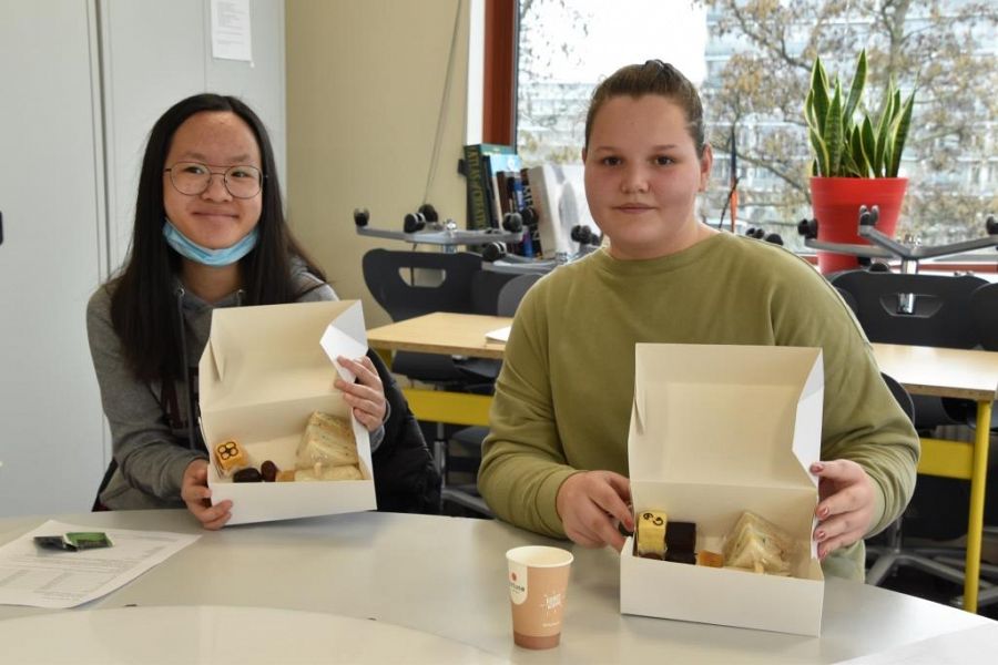De vierde klassen op de Mavo Vos kregen al les op locatie, die werken naar hun eindexamen toe en daar zijn uitzonderingen voor gemaakt in de coronaregels. De klassen 1 tot en met 3 worden weer ‘binnen gehaald’ op donderdag 4 maart en vrijdag 5 maart. In delen dus, maar wel met een grootse verrassing: een high-tea met allerlei lekkers. Daarbij moesten ze eerst raden wat het was toen er doosjes werden uitgedeeld. ,,Ik dacht eerst aan noedels’’, lachte één van de leerlingen uit de eerste klas. ,,Die worden in de schoolkantine namelijk het meest gegeten’’. De ‘afwijking’ in het menu werd desondanks zeker gewaardeerd en leerlingen en docenten lieten het zich prima smaken.