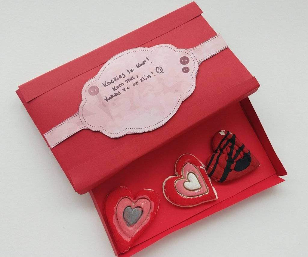 De leerlingen zijn enthousiast aan de slag gegaan met het ontwerpen van zowel de koekjesvorm als de verpakking.